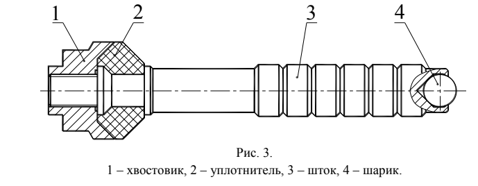 Клапан в сборе 1, 11 (см. рис.3) состоит из штока 3 с завальцованным шариком 4, уплотнителя 2 и хвостовика 1.